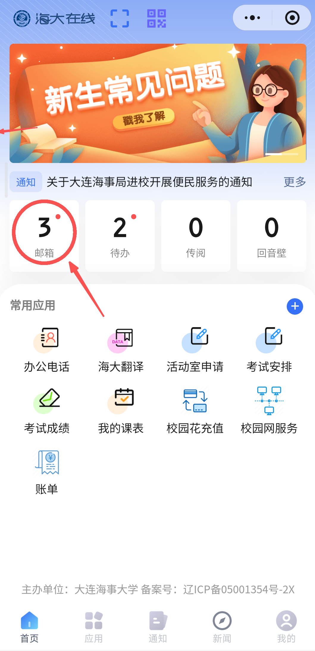Step 4: 你可以在海大在线查看邮件,也可以登录官网查看